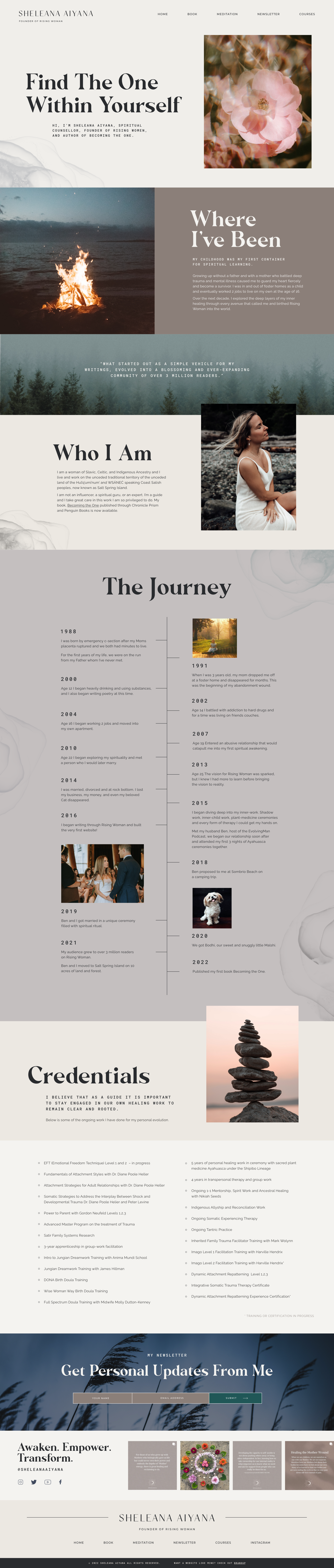 Sheleana is a conscious relationship author and founder of Rising Woman. We stayed true to the Sheleana brand voice that she already established on her Instagram, sales page, and in her book, making sure to amp up the inspirational messaging, while remaining relatable and including a flair of the poetic.